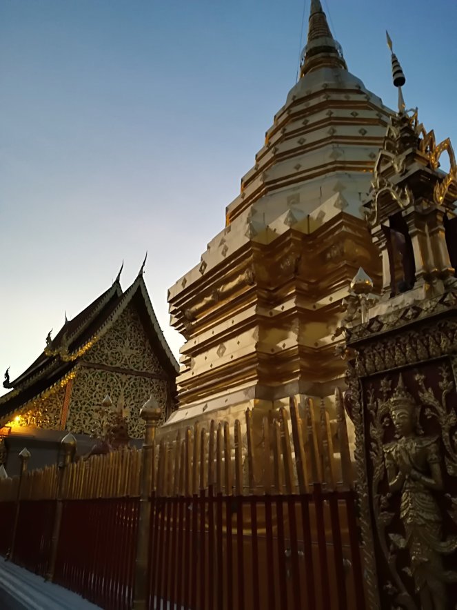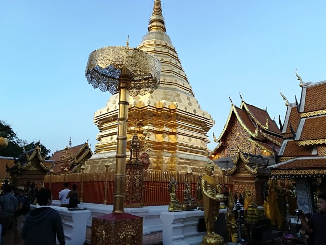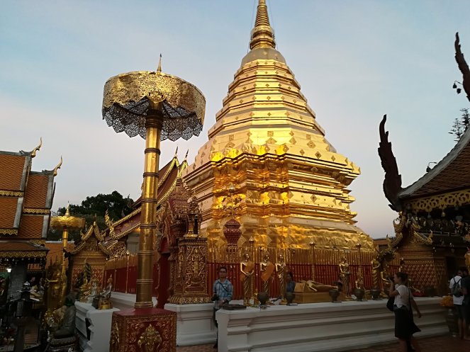 Dedicamos la tarde a subir al Doi Suthep, un monte en el noroeste de Chiang Mai que tiene en su cima un templo que es sencillamente espectacular. Además, llegamos allí al atardecer y mientras que los monjes budistas entonan su canto casi mágico.