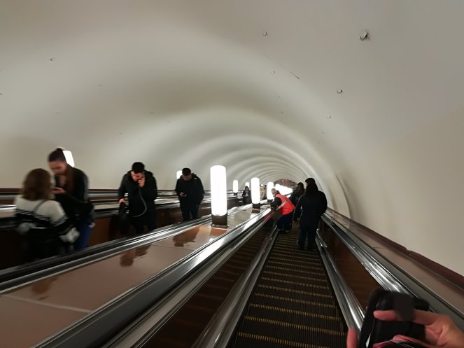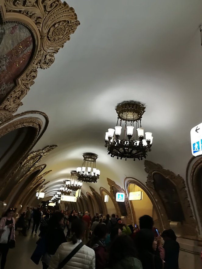 Por supuesto, no nos podemos ir de Moscú sin hacer un breve recorrido por el metro. Una infraestructura impresionante que funciona a la perfección y que conecta una cuidad enorme. Es bastante fácil moverse en él, incluso a pesar de que los nombres de las estaciones están sólo en cirílico. Las escaleras mecánicas son eternas pues el metro de Moscú es el que más profundo está del mundo. Eso sí, cuidado con ponerse a la izquierda en las escaleras porque os podéis llevar algún improperio en ruso, de hecho hay un vigilante al pie de cada escalera que, entre otras cosas, se dedica a eso. Y además de todo esto, es precioso.