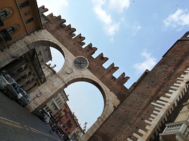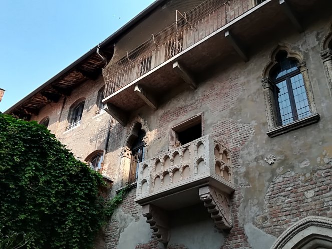 Callejeamos recorriendo la ciudad y en busca del rincón por el que es famoso esta ciudad: la casa de Giulietta. Se trata de un palacio medieval, hoy convertido en museo, donde la tradición popular sitúa la casa de la protagonista de Romeo y Julieta, de William Shakespeare. Por supuesto cumplimos con los deberes de besarnos en el balcón de Julieta y tocarle el seno derecho a la escultura del patio, aunque no tenemos claro si era para asegurarnos volver a Verona o para encontrar el amor verdadero…