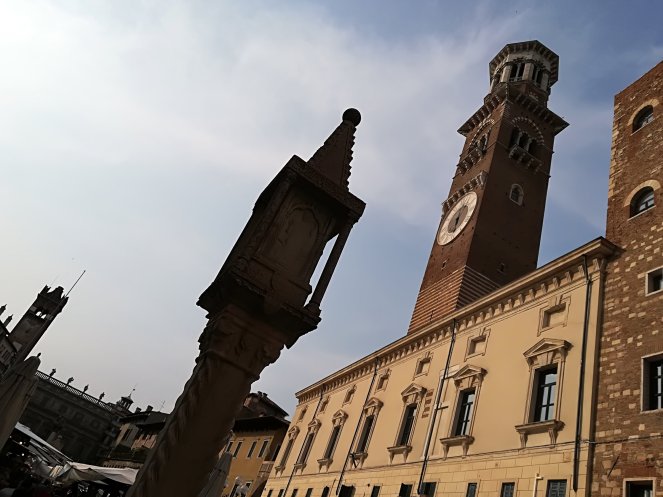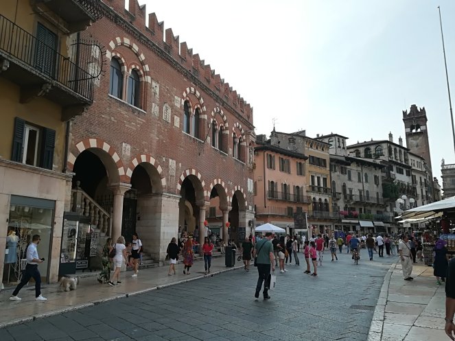 Muy próxima a la casa de Julieta se encuentra la Piazza delle Erbe, la más céntrica de Verona y una maravilla a la vista aunque la aglomeración de puestos, terrazas y gente no la hacen justicia en las fotos que os puedo enseñar. Cerca de esta plaza se encuentra el antiguo mercado de abastos de la ciudad, que merece la pena visitar, así como rodear la plaza para echar un vistazo a sus balcones de flores, todos con un encanto especial.