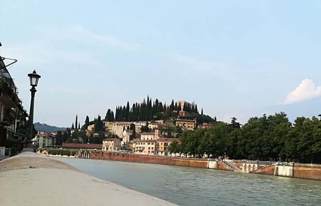 Y por si no nos habíamos enamorado aún lo suficiente de esta cuidad, nos acercamos a contemplar la vista del Castel di San Pietro desde el río Adigio para culminar nuestra visita a Verona.