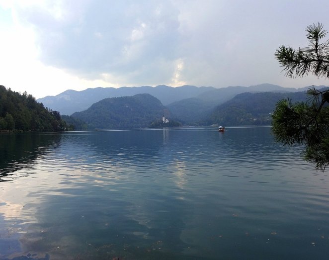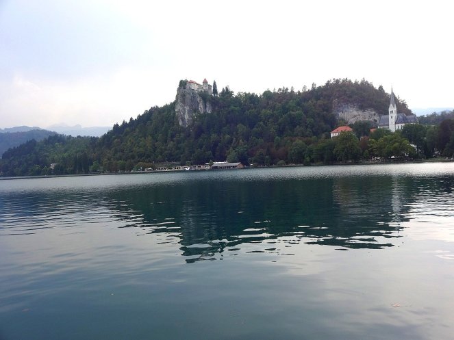 Antes de que la tormenta se desatara, he podido hacer una ruta andando de unos 8 km y después, como recompensa, tomar un trozo de tarta de crema, que después he sabido que es típica de Eslovenia, con un café a pie del lago.