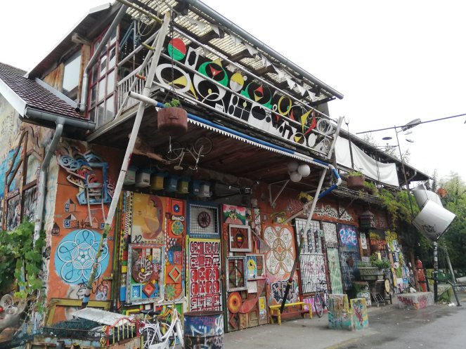 Paseando por las calles de Liubliana he conseguido dar con el Barrio Mételkova. Este histórico barrio eran los barracones del ejército austrohúngaro y, posteriormente, del yugoslavo. El movimiento cultural para la paz, que nació en 1991, ocupó este lugar y con la colaboración de artistas han transformado el lugar en un área de interés, no sólo para turistas pues asociaciones LGTB, ONGs y artistas tienen allí su sede.