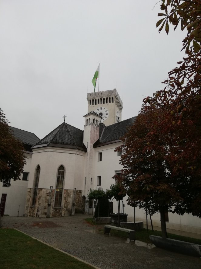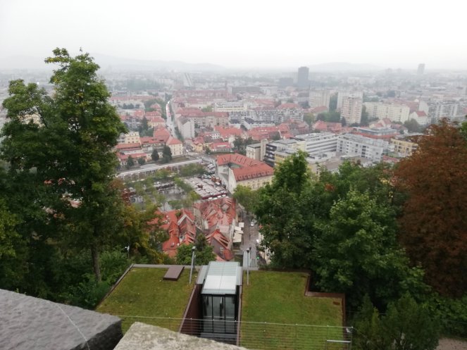 La visita al castillo sorprende pues está decorado muy moderno por dentro siendo un edificio del siglo XII. Alberga exposiciones de fotografía y una sobre la historia de los dragones, que es uno de los símbolos de Liubliana (de hecho, por toda la ciudad se pueden encontrar tiendas en las que venden dragones de peluche, de madera o cerámica). Y las vistas desde la torre permiten observar toda la ciudad, aunque en mi opinión desmerece un poco con la lluvia.