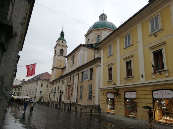 Y seguimos camino para alcanzar a mediodía Liubliana, la capital de Eslovenia. Aquí la lluvia no me ha dado ni un respiro así que he disfrutado algo menos la ciudad por ello pero Liubliana es un lugar con mucho encanto atravesada por el río Liublianica que le da un aire señorial a una ciudad de edificios pastel y calles peatonales anchas en todo su casco histórico.