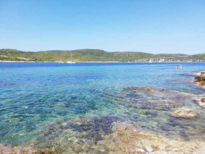 Tras visitar la isla de Vis, llega el momento del primer baño en el Adriático y para ello nos dirigimos a la isla de Budikovac, donde las aguas son especialmente transparentes (lo cual es una suerte para poder esquivar los erizos) con una playa de arena, otra de cantos rodados y una zona de rocas, mi preferida, que es mejor no explorarla si no se llevan escarpines.