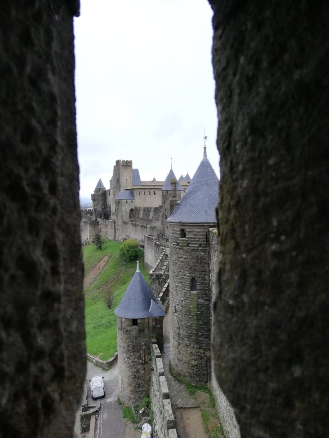 El castillo de Carcasona está construido sobre una domus romana, de la que aún se conservan algunos de sus frescos originales. Desde el patio de honor se accede a una incesante sucesión de salas y torres por las que no puedo evitar sentirme admirada e imaginar que estoy en la Edad Media.