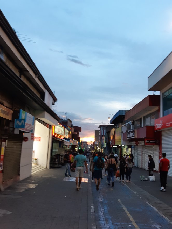 Nos dirigimos a la Avenida Central, máximo exponente del caos, una calle peatonal con mucha animación donde encontrar tiendas, bares, vendedores ambulantes y gente y música por todas partes. Nuestras cansadas cabecitas no soportan muy bien ya el jaleo así que solo aguantamos en la calle el tiempo suficiente para ver este atardecer al final de la misma.