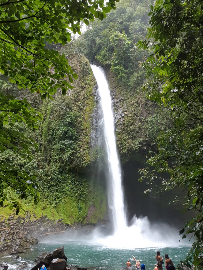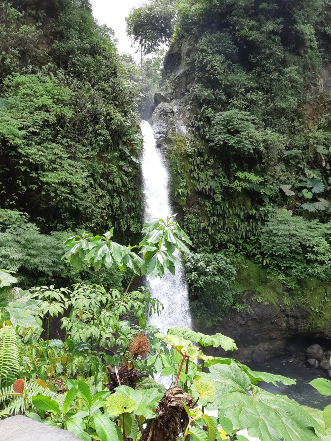 Continuamos el día muy cerca visitando la Cascada de La Fortuna junto al mariposario y al jardín de orquídeas. Lástima que la lluvia torrencial que ha caído durante nuestra ruta del chocolate ha hecho que todas las mariposas corran a refugiarse así que no hemos podido ver muchas. Para llegar a la catarata, nos espera un descenso de 500 escalones, no sin antes observar la catarata desde un mirador en lo alto que nos promete que la bajada merecerá la pena.