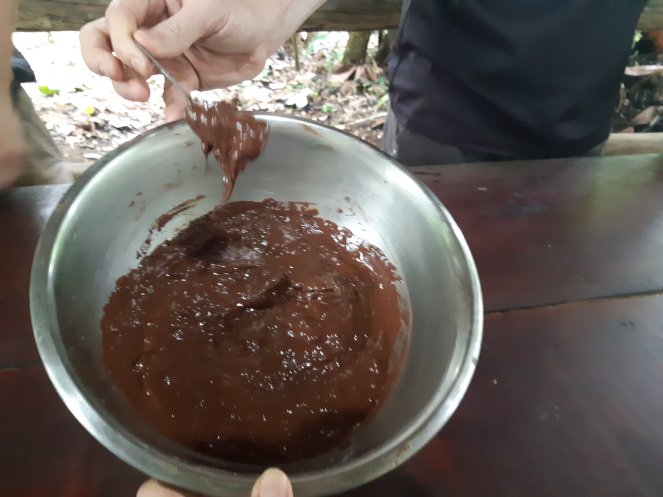 Durante el tour hemos podido ver cómo se fermenta, seca, muele, se separa de la cáscara y finalmente se convierte en una pasta con la que convertirnos la semilla del cacao en chocolate. Además, hemos podido probar el fruto en cada uno de los pasos, siendo testigos de cómo va evolucionando su sabor hasta convertirse en la delicia final. Interesante y delicioso.