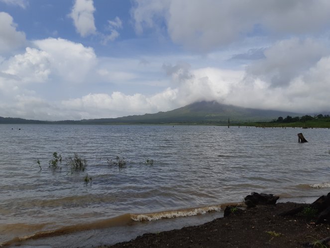 Después de la catarata, nuestro plan era visitar el volcán pero el mal tiempo nos ha seguido hasta él así que no hemos podido hacerlo. Esperemos que mañana el día esté más despejado y podamos ver la principal atracción de este lugar que me ha conquistado. En cambio, la lluvia no nos iba a parar y hemos aprovechado el resto de la tarde para ir al pueblo de El Castillo y visitar el Lago Arenal, llevando al extremo a nuestro 4×4. Las vistas, tanto por el camino como a pie del lago, son de esas que te quedas para siempre contigo.