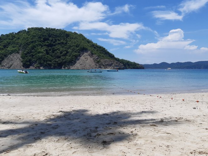 Tras un rato muy agradable de navegación, nos zambullimos en el agua para hacer snorkel y contemplar los peces de colores revoloteando a nuestro alrededor. Además, bajando un poco más pudimos ver también un tiburón de arrecife e incluso tuve en mis manos durante un buen rato una estrella de mar que me cogió cariño y pegó sus ventosas a mi mano, sin querer separarse de mí. Llegamos a Isla Tortuga agotados y hambrientos, por suerte Josua y Víctor, nuestros guías, nos prepararon una deliciosa comida local para reponer fuerzas.El tiempo en Isla Tortuga fue fantástico, no era para menos teniendo en cuenta que estábamos en mitad del Pacífico en una isla de vegetación y arena blanca en un día espectacular. Por suerte, además, dimos con unos compis de día muy geniales con los que hicimos piña y nos echamos unas buenas risas.